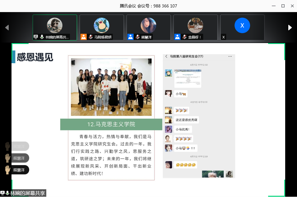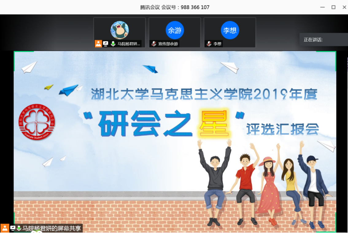 2019年度“研会之星”评选汇报会顺利举行,会议采用线上汇报、交流的形式展开,由啪啪啦