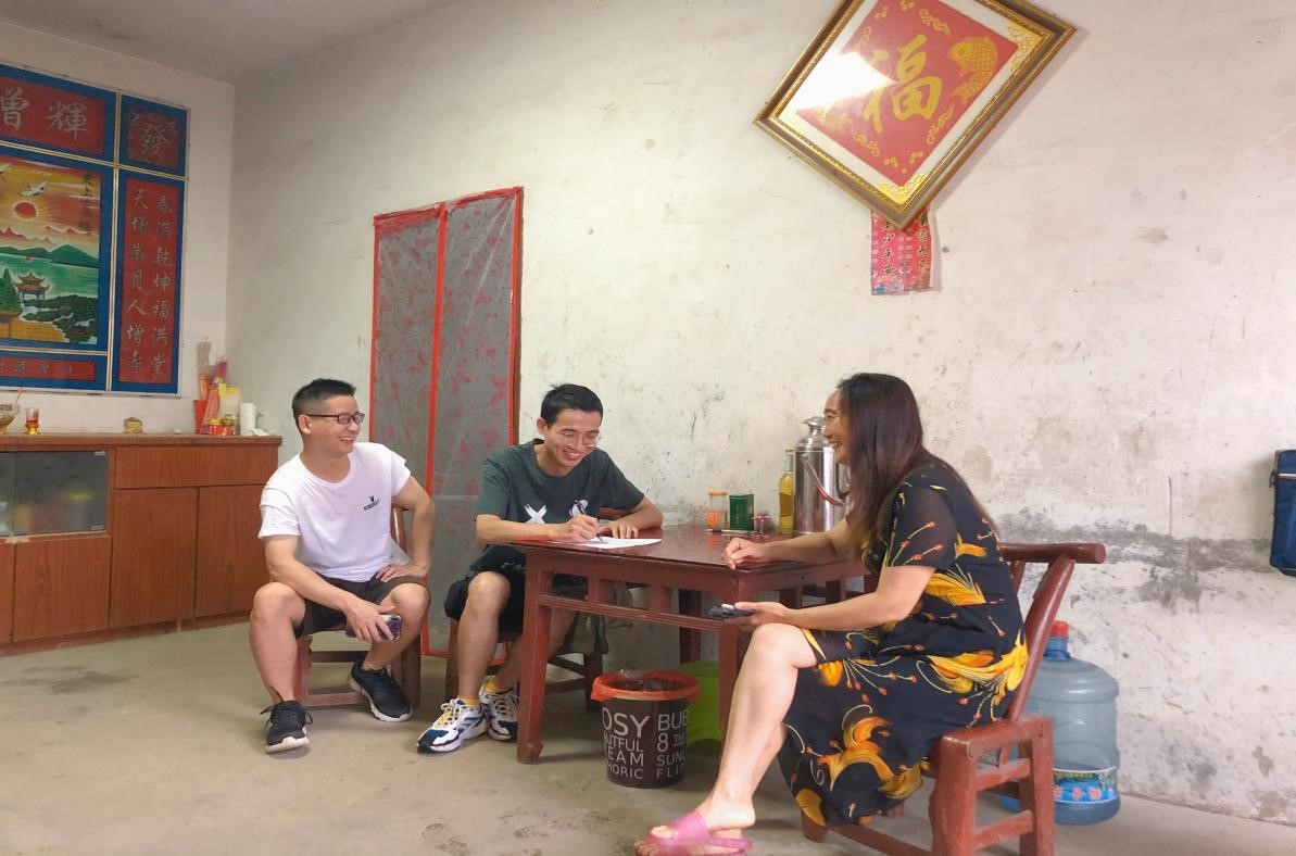 (图为调研队队员在大堰村村民温大妈家中访谈)